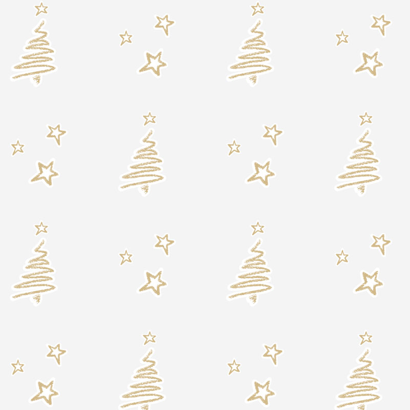 Stilisierte Tannenbäume und Sternchen in gold auf weißem Seidenpapier.